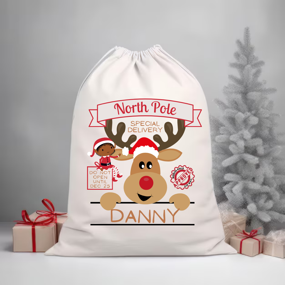 Make Christmas morning magical with our Personalized Santa Sack! Crafted from durable canvas, this 18” x 26” sack features a festive design and can be customized with any name. Its roomy size and secure drawstring closure make it perfect for holding holiday surprises.