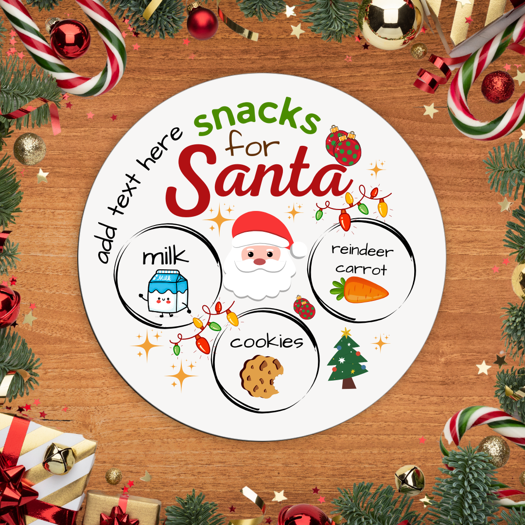 Make Christmas Eve extra special with our Snacks for Santa Wood Tray! This 12" round tray, crafted from sturdy wood with a sleek 0.25" thickness, is perfect for presenting treats for Santa and his reindeer—and maybe a few for yourself too!